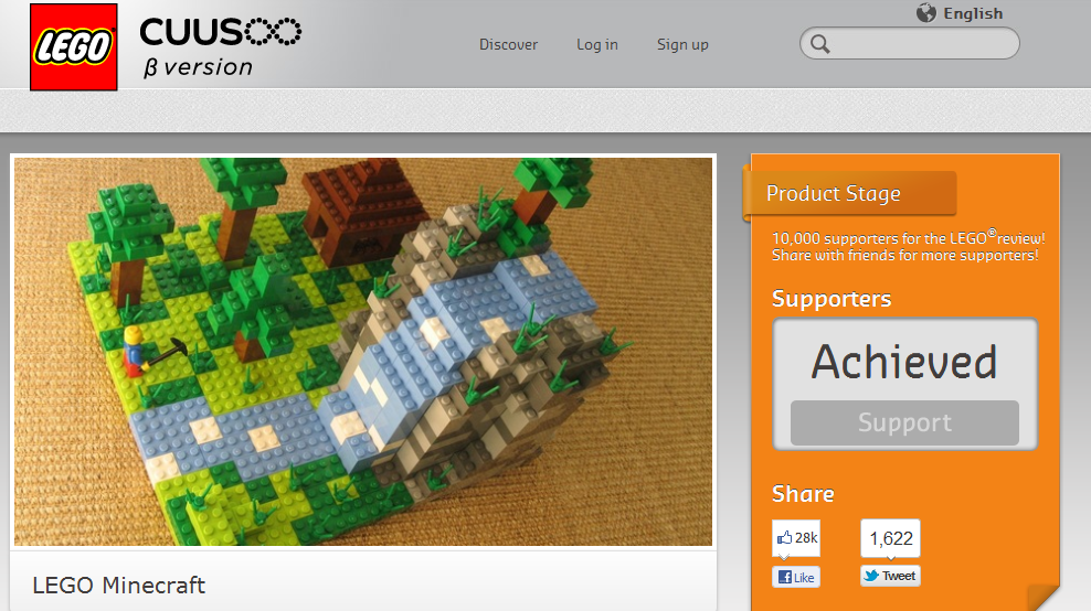 Le projet de Lego, soumis à Cuusoo par l’équipe de Mojang, a en effet recueilli plus de 10.000 votes en moins de 48 heures. Mojang a d’ores et déjà indiqué qu’1% des royalties liées aux projet sera reversées à un organisme de charité.