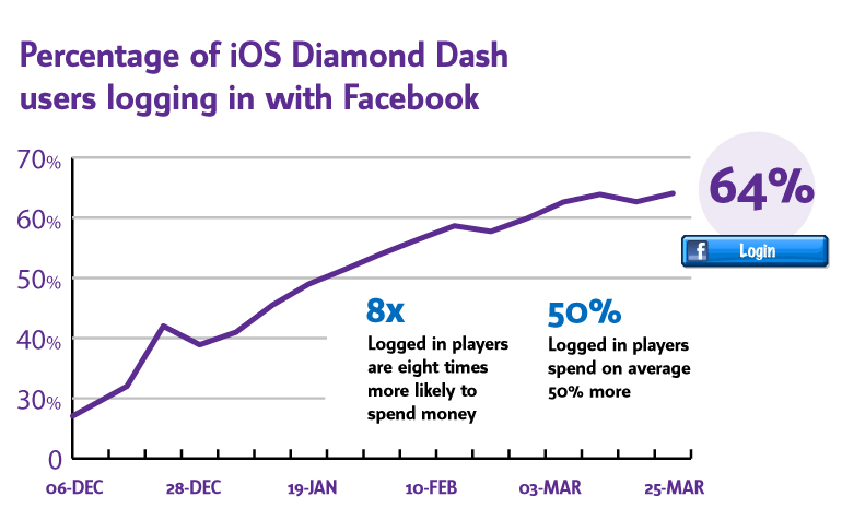 Autre avantage de Facebook Connect : les joueurs connectés sont 8 fois plus enclins à acheter des biens virtuels et 50% dépensent deux fois plus que les joueurs non connectés.
