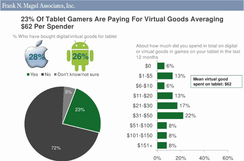 Les joueurs sur Tablettes dépensent en moyenne 62$ en biens virtuels contre 25$ sur smartphones.