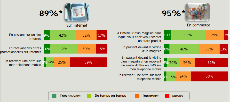#4 : La recherche d’informations sur Internet avant achat en magasin est une tendance forte. 87% des actifs urbains le font au moins de temps en temps et 41% le font très souvent (67% d’entre eux déclarent le faire au moins de temps en temps).