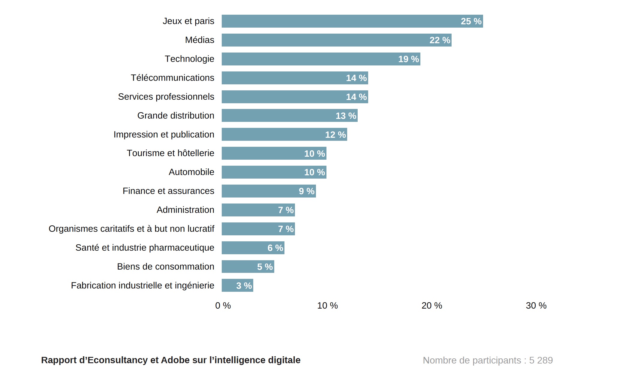 - 48 % desconsidèrent que le digital est présent dans la plupart de leurs activités marketing (contre 46% en moyenne dans les autres secteurs).
