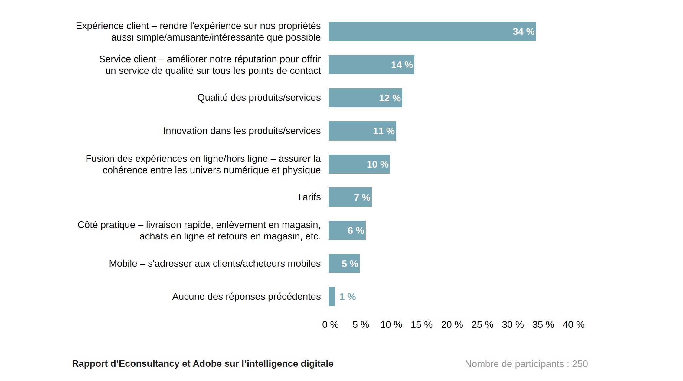 L’expérience client, de très loin, est perçue comme privilégié pour se démarquer de la concurrence.