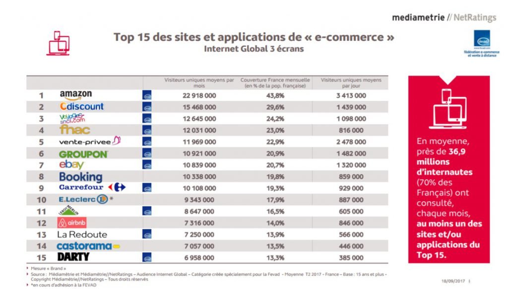 8- Amazon domine le classement des sites marchands devant C-Discount, Voyages SNCF, FNAC et Vente-Privée.