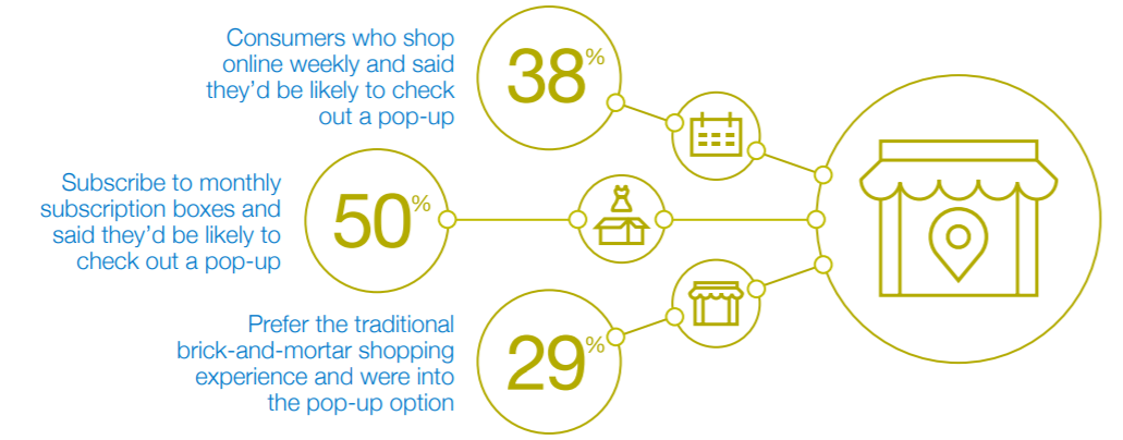 38% des shoppers hebdomadaires online se déclarent disposés à visiter un pop up store.