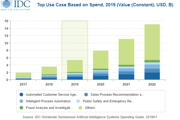 Une récente étude d’IDC vient confirmer la tendance. En Asie / Pacifique (hors Japon), les investissements de différentes industries dans des systèmes en intelligence artificielle vont atteindre en 2019 près de 5,5 milliards de dollars, soit une augmentation de 80 % par rapport à 2018. Ils atteindront plus de 15 milliards en 2022.