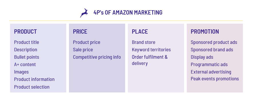 Le marketing mix sur Amazon peut s’expliquer de façon très simple, si simple en fait que nous pouvons l’expliquer via le modèle de McCarthy des années 1960, les 4 Ps du marketing. Le produit, sa définition et description, le prix qui joue un rôle primordial, le lieux (Place) que nous définissions d’une part comme le territoire géographique mais aussi le territoire sémantique (où se trouve le produit dans les recherches par mots clés) et finalement la promotion sous forme de publicité, opérations spéciales et évènements. La plateforme Amazon est un véritable mix marketing où l’on opère en optimisant son produit, son prix, son emplacement et ses promotions. Et pour réussir ce marketing, il faut bien qu’on soit capable d’agir sur les quatre paramètres et non plus seulement sur un ou deux. L’importance du prix était évoquée par Nils Zündorf : « Des annonceurs ont souvent peur qu’Amazon détruise leur prix s’ils s’y lancent. Mais en réalité, c’est déjà fait, qu’ils le veuillent ou non. »