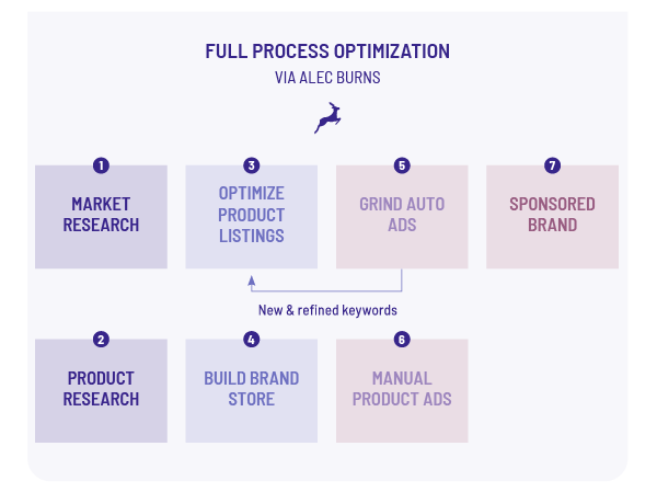 Nous avons appelé une de ces stratégies la « full process optimization », car elle passe par une démarche structure d’analyse et mise en place. On analyse le marché avec le « review mining » - en écoutant les utilisateurs via des avis donnés sur ses produits et ceux des concurrents, on analyse les territoires sémantiques pour identifier les mots clés et l’opportunité qu’ils représentent pour son produit. On analyse la concurrence pour comprendre le niveau de qualité, de satisfaction, de présence et de prix à battre. Et tout cela avant de choisir les produits sur lesquels on veut se concentrer. Ensuite on optimise la présentation de ses produits en relation avec les bons mots clés et dans une brand store. Par la suite on va construire des historiques et des données sur lesquelles on peut apprendre. On laisse d’abord Amazon effectuer du ciblage publicitaire automatique pour ensuite optimiser ses positionnements et campagnes de « sponsored product ads ». L’étude de cas d’un de nos experts témoignait d’une augmentation de ventes de 79% tout en réduisant le nombre de produits travaillés.