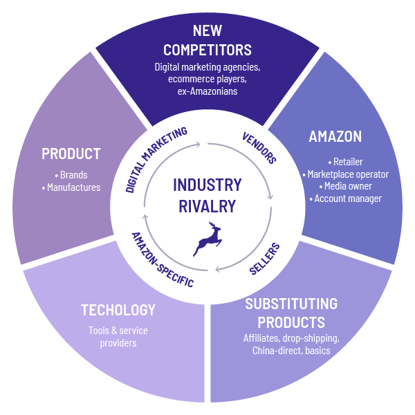 Et derrière ces deux types de vendeur de produits, se trouvent des opérateurs marketing qui peuvent être des équipes inhouse, des agences de marketing digital ou bien ces agences d’un nouveau type, uniquement dédiées au marketing sur Amazon. On a l’impression de voir l’histoire se répéter – le nombre d’agences de Search créées par des ex-Google est assez impressionnant et maintenant ce sont des ex-Amazon qui créent les agences qui percent de façon assez spectaculaire. Mais une des grandes surprises dans ce jeu, c’est que Amazon joue aussi ! Soit en tant qu’opérateur de campagnes pour des vendeurs, soit par l’opération de ses propres marques comme les Amazon Basics et en permanence en essayant d’optimiser ses deux obsessions : l’expérience client et la croissance des ventes.