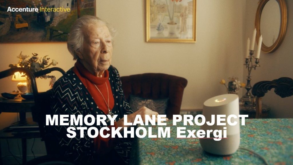 Développée par l’agence Accenture Interactive, la technologie au cœur du projet Memory Lane est un assistant vocal capable de poser des questions personnelles et comprendre la corrélation entre différentes réponses, grâce à l’intelligence artificielle. Ce qui produit une véritable conversation.