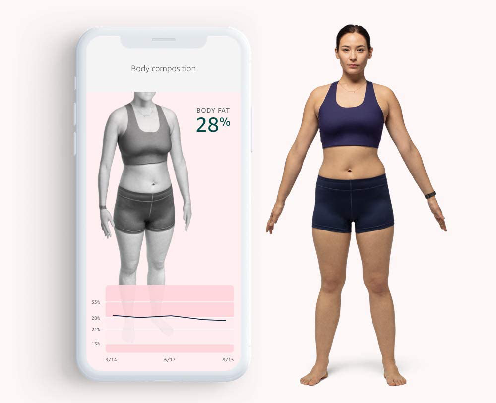Amazon Halo inclut la mesure de la masse graisseuse et le calcul de l’IMC (Indice de Masse Corporelle), présenté comme une mesure plus fiable que le simple rapport poids/taille. Amazon Halo va plus loin que les bonnes vieilles balances à impédancemètre, en pondérant ces mesures avec l’analyse d’un modèle 3D du corps de l’utilisateur. Basée sur des modèles algorithmiques, ces analyses sont générés à partir de photos que l’utilisateur aura uploadé sur la plateforme. Les concurrents sur le créneau des bracelets connectés, comme Fitbit et Apple Watch ne proposent pas encore cette mesure du gras.