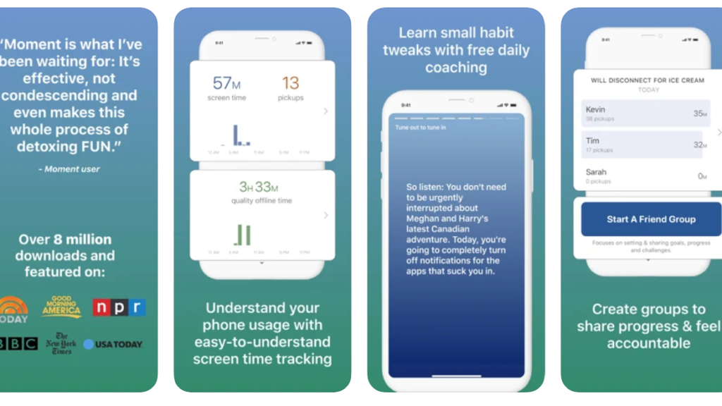 Moment est une application pour comprendre l’utilisation que nous (et notre famille) faisons de notre téléphone portable ou tablette et adopter de nouvelles habitudes plus saines. Disponible uniquement sur iOS, et en Anglais, Moment a déjà été téléchargée 8 millions de fois.