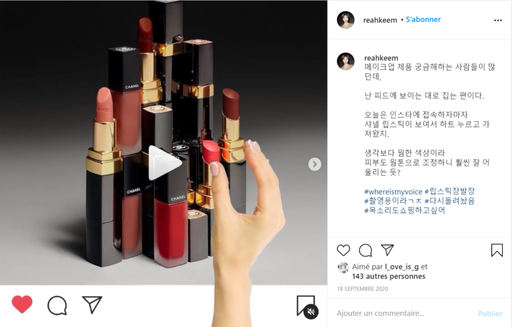 Depuis mai dernier, Reah partage les photos de son quotidien sur son compte Instagram (suivi par près de 7000 personnes). Une vie d’influenceuse entre enregistrement en studio (la musique est disponible sur Soundcloud), pause détente dans un café et conseils maquillages (notamment une opération avec Chanel).