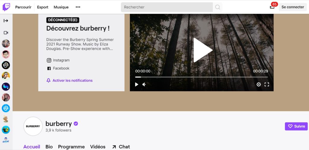 A l’instar d’un Live sur Instagram ou Facebook, où la marque jouit d’une communauté importante (respectivement 17,9M et 17,4M d’abonnés), Burberry a décidé de se lancer sur une plateforme où elle était quasi anonyme.