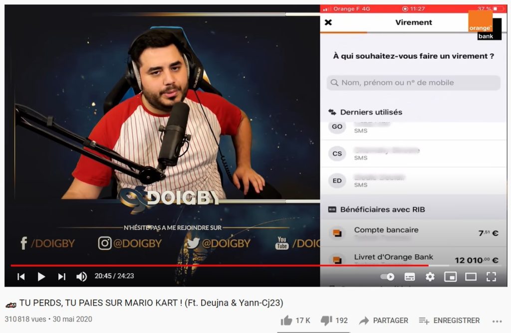 La néobanque Orange Bank s’est invitée sur Twitch à l’occasion d’un tournoi Mario Kart intitulé “Orange Bank des Subs”, organisé par la marque avec le concours de 3 streamers de la plateforme : Doigby (1 million d’abonnés) ; Deujna ( 350 000 abonnés) et enfin, Yann_cj23 (200 000 abonnés).