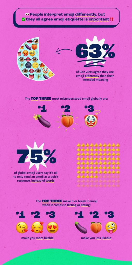 Dans le cadre du World Emoji Day, Adobe publie ce jour les résultats de son étude sur le sujet1, et dont voici une sélection d’enseignements :
